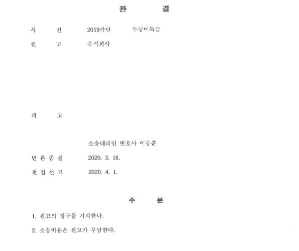 [민사-부당이득] 동업 정산금 반환분쟁 피고대리 전부승소 사례